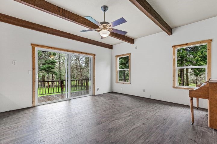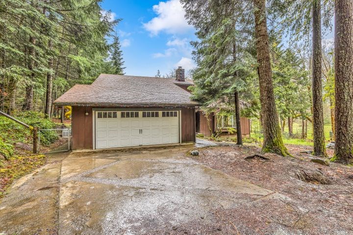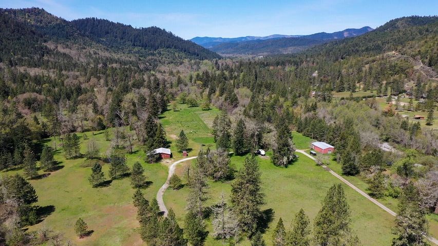 43 mostly flat, usable acres-2 dwellings in beautiful Sunny Valley! Cozy up in the NW Style home that has 3 Bed/2 bath with wrap around cook's kitchen and 2 car attached garage. Behind this home is a fenced yard with a playground and patio deck perfect for entertaining. 2 bed/1.5 bath guest home with attached garage and a vaulted porch are perfect for enjoying morning coffee overlooking the terrain- also with a fenced yard with raised garden beds. Landscape around the homes is indicative of the redwood/coastal terrain and is gorgeous being backed up by BLM land. Each place has its own propane generator with 500+ gallon tank. 3 wells- 1 is Artesian, 2 RV spots, Pastureland, fencing, 50+ raised garden beds with drip systems, and multiple ponds. Seasonal creek runs through your property and Graves creek runs along the properties border. Legend says there was a personal air strip there in the 70's. 2 huge warehouses, several shops, chicken coop, fenced and cross fenced areas make this the perfect place for anything you can dream of.
