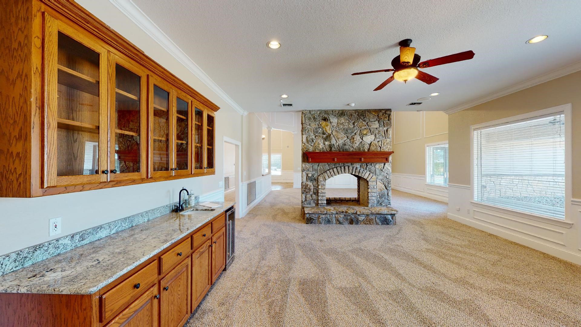 Resort Home! Enter the double wooden doors to a grand entranceway highlighting the 20 foot dining room cathedral ceilings this gorgeous 4 Bedroom 4 Bath, executive home in White Bluff Resort in Whitney Texas is centrally located in Hill County in the Whitney ISD just cannot be missed! This beautiful home boasts an open concept with two story cathedral ceilings and an extensive view of kitchen to dining room. Built in stainless steel appliances with dual ovens, commercial grade refrigerator, microwave, a hammered copper farm sink, vegetable farm sink, refrigerated wine cooler and wine racks in one of the two pantries, along with a glass cooktop. Oh, and did I mention the six beer taps or the built in desk across from the kitchen which could be used as a study area while preparing meals. This kitchen has it all including granite counters with a large island all of which overlooks and connects into the dining room keeping entertaining easy and close! The dual adjoining living room highlights a two-story, two sided, gas burning fireplace and features an open two story cathedral ceiling on the formal side and an intimate media family room on the other side with built in cabinets, mini refrigerator with a wet bar. A theater room with theater seating and blackout lights is also onsite for gatherings to enjoy favorite movies or sporting events. The office has built in cabinets with built in bench seating, two workstations, a wet bar with a gas operated stone fireplace. The utility room features built in cabinets, an island, a sink along with enough room for a standalone freezer. The primary bedroom and bathroom has dual ceiling fans, sunken hot tub, built in dry bar, built in cabinets and shelves, dual vanities, a sauna, a bidet, along with a spa shower with body sprays. Each of the three bedrooms have their own ensuites with an additional two half baths for visiting guests. The mechanical amenities of the home provide 6 HVAC units including a pool heater with temperature controlled 3 car garage, 3 propane tanks, a sprinkler system, and a covered car port along the front entrance. The pool house or guest house quarters is 597 square feet with a full kitchen and one bedroom. Live the luxury lifestyle in this remodeled 7100 square feet on 4.39 acres located in the White Bluff Resort in Lake Whitney, Texas.