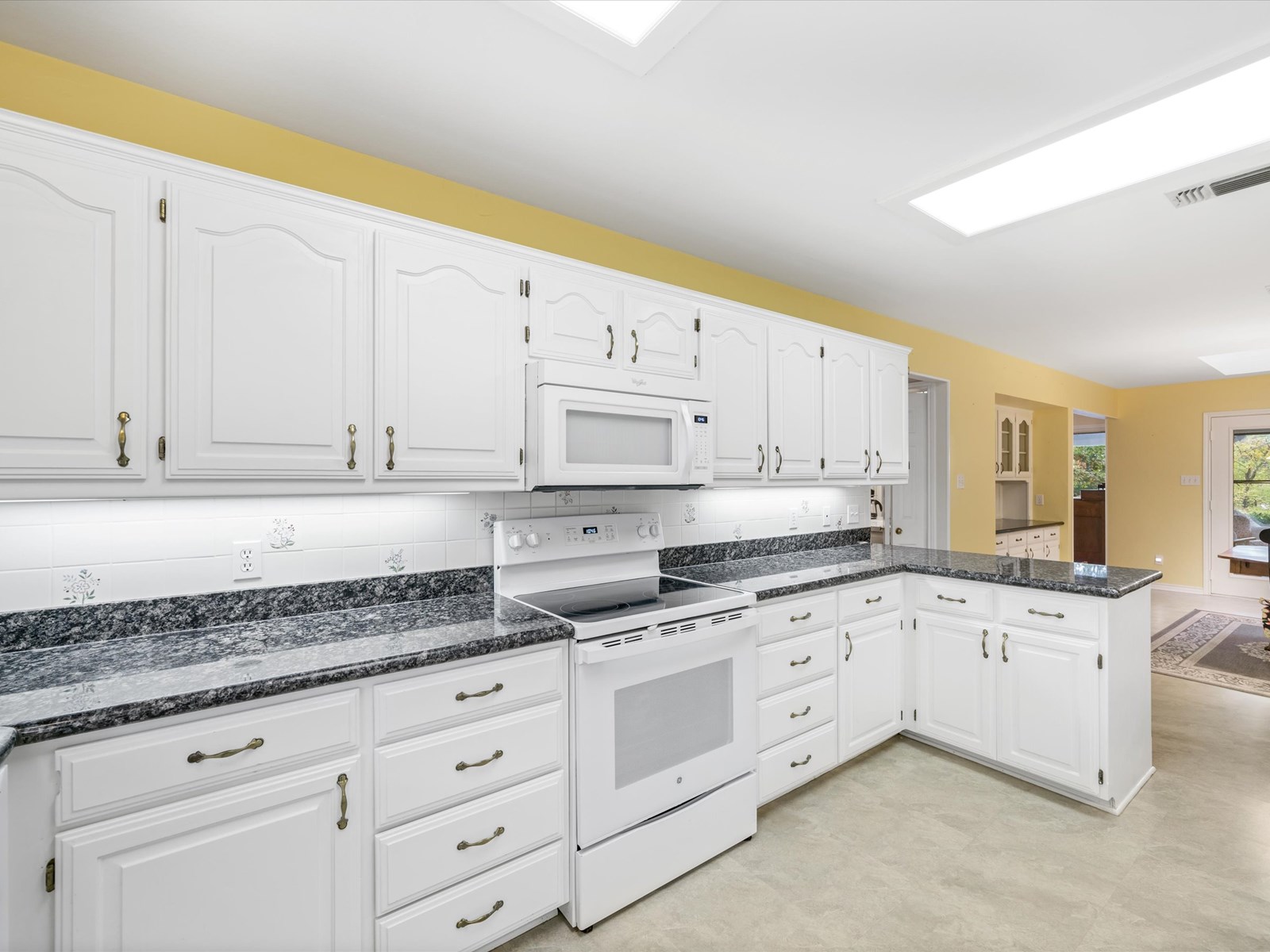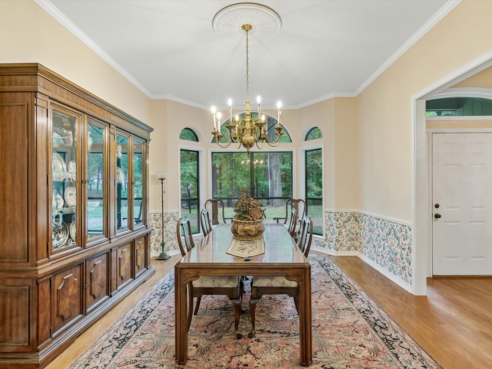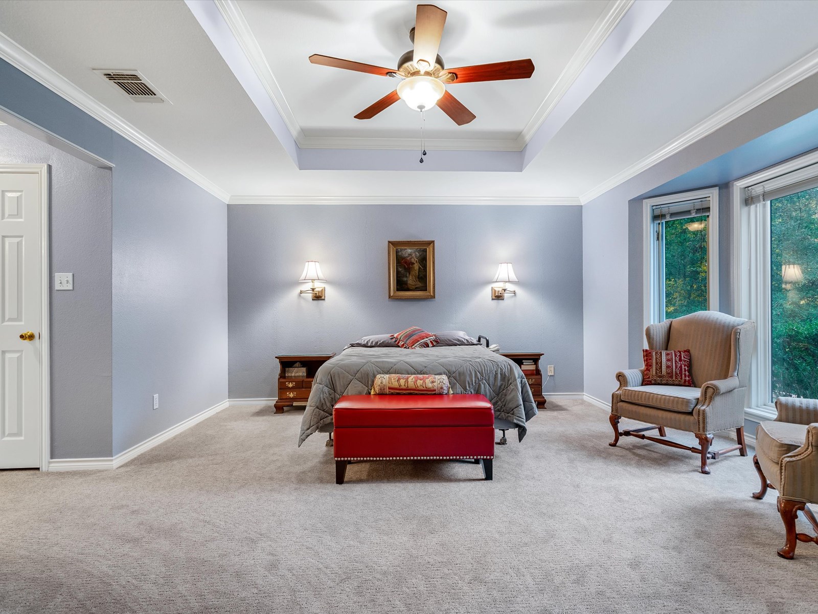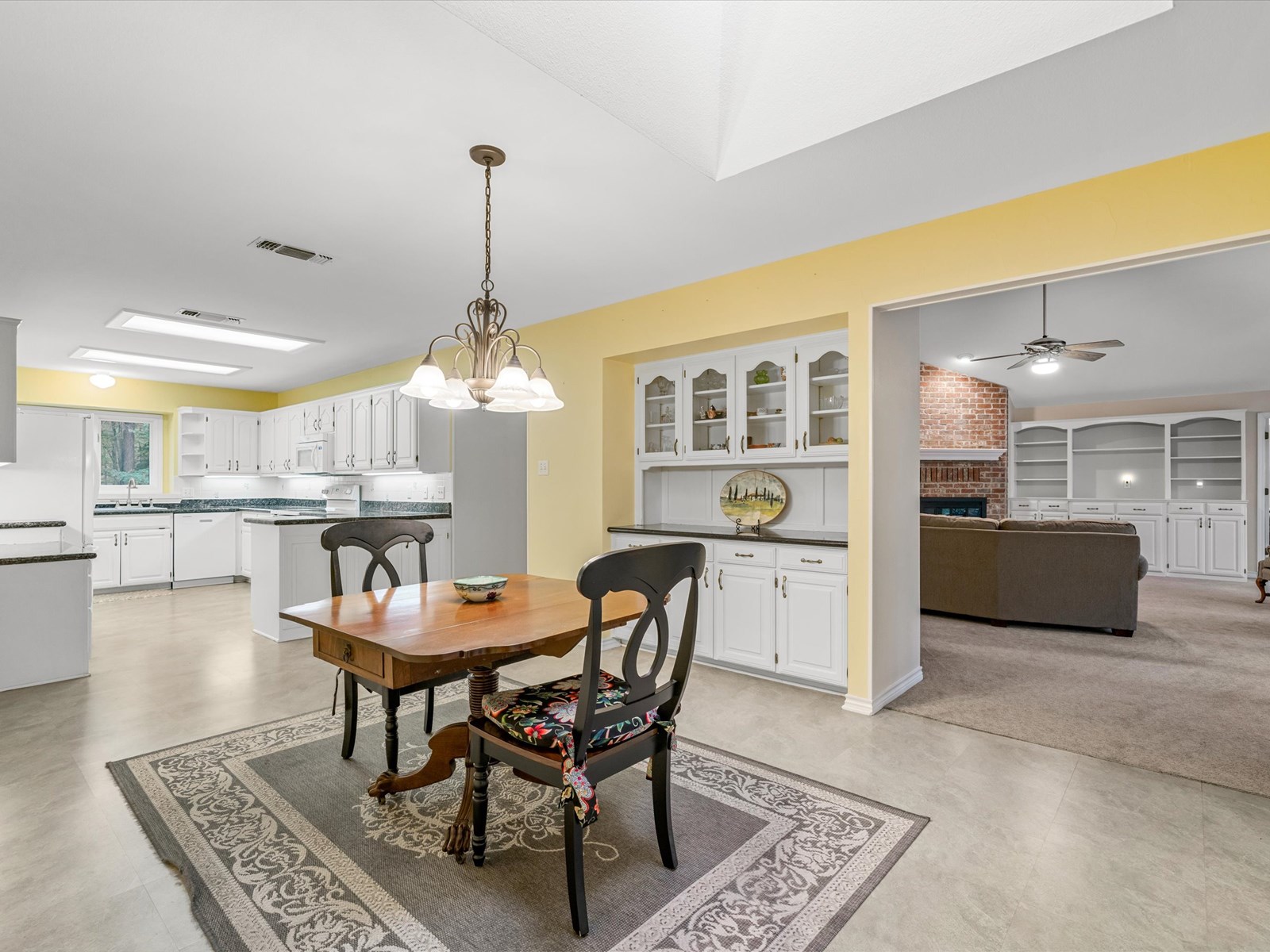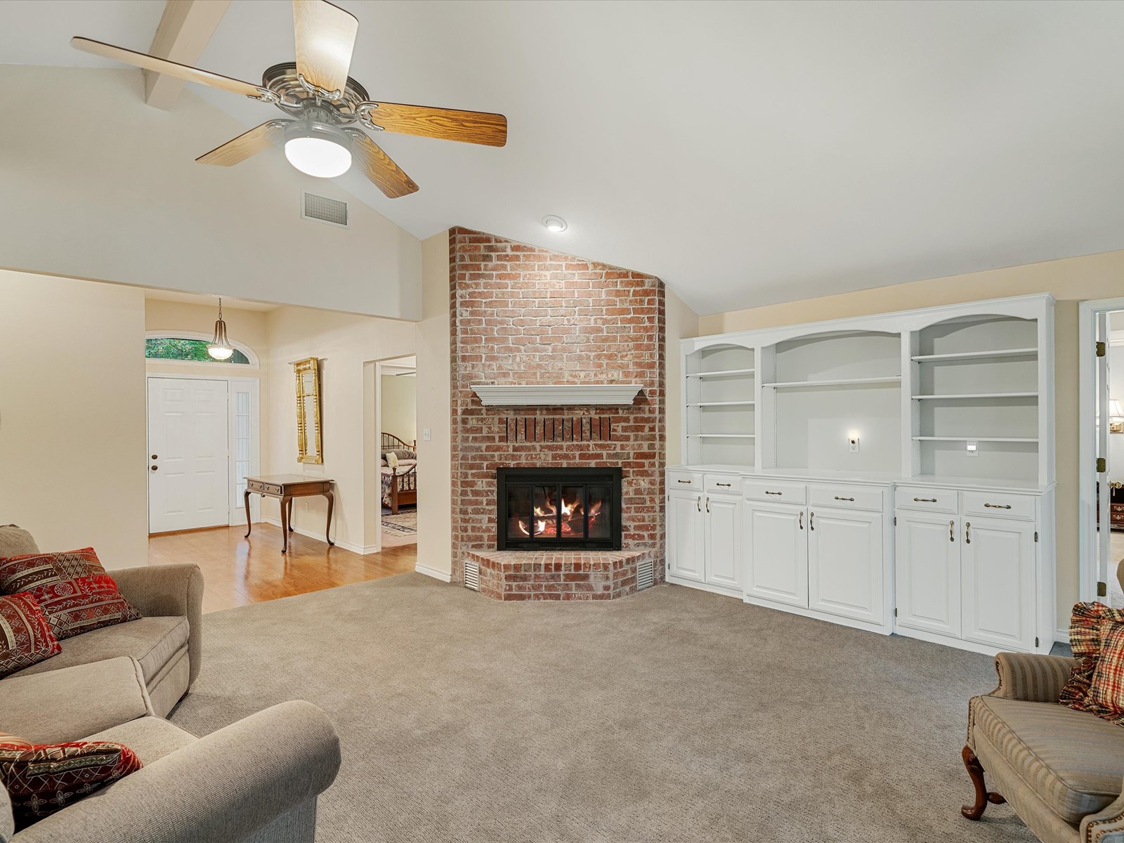 Lake Greenbriar WATERFRONT on over TWO acres! Wonderful one owner, custo, m home with over 3000 sf of living area. 4BD/3.5BA home designed to maximize awesome views of the lake from almost every room. Living room features vaulted ceiling, WBFP, built-ins and wall of windows. Formal dining with bar would make beautiful office/library. Kitchen is spacious with granite counter tops, pull outs and lots of cabinet & counter space. Primary bedroom en suite has his/her closets, double lavatories, shower & tub. One guest bedroom is an en suite and other 2 bedrooms share a Jack & Jill bath. Abundant storage and closet space throughout. Oversized attached garage with attic storage. Outside amenities include sprinkler system, detached workshop with electricity, enjoyable covered patio perfect for outdoor gatherings & open patios in back yard. This home has been well maintained and lovingly cared for. Private location to be on Lake Greenbriar as home is located at the end of short cul-de-sac and adjoins Point Park.