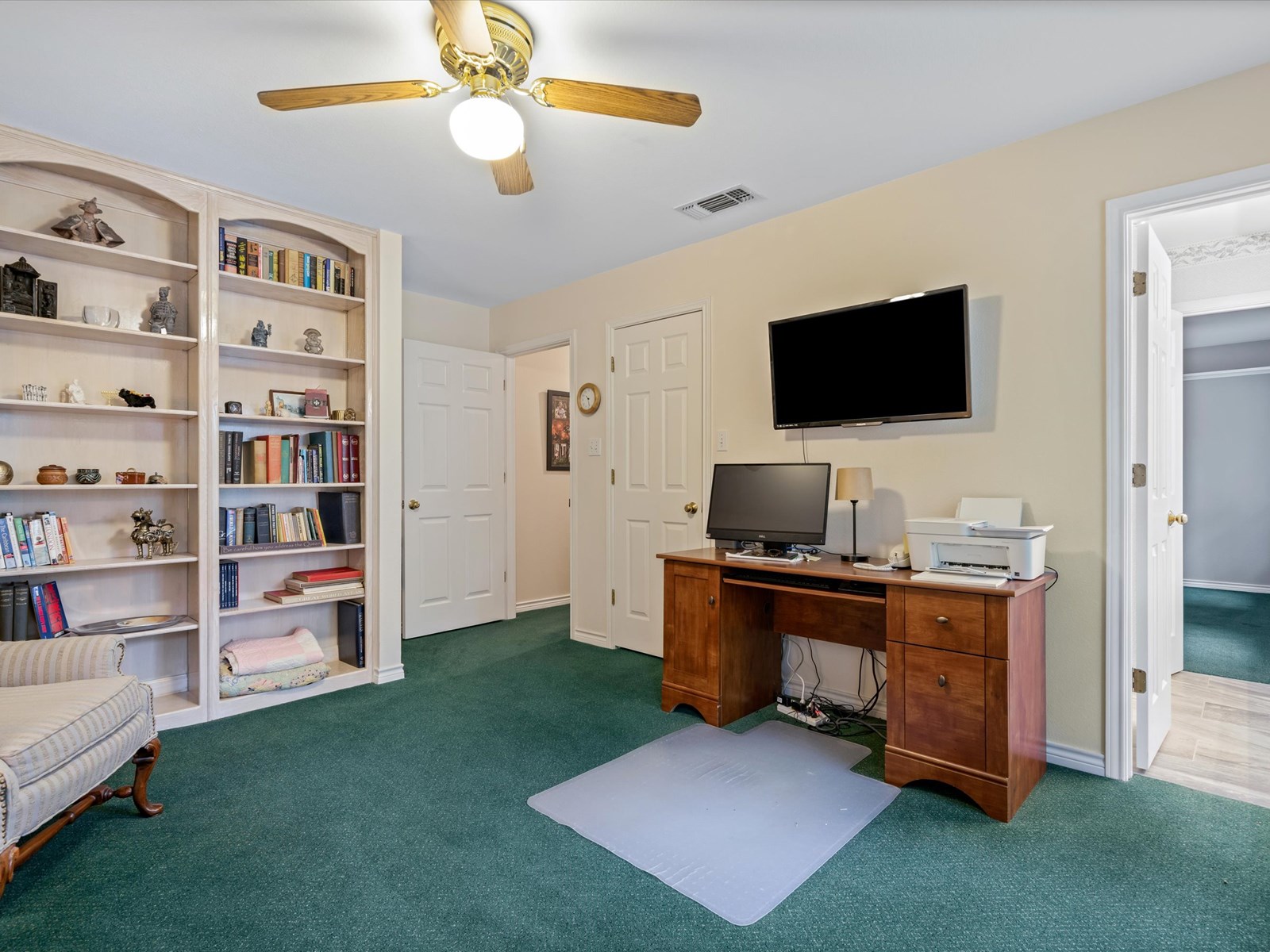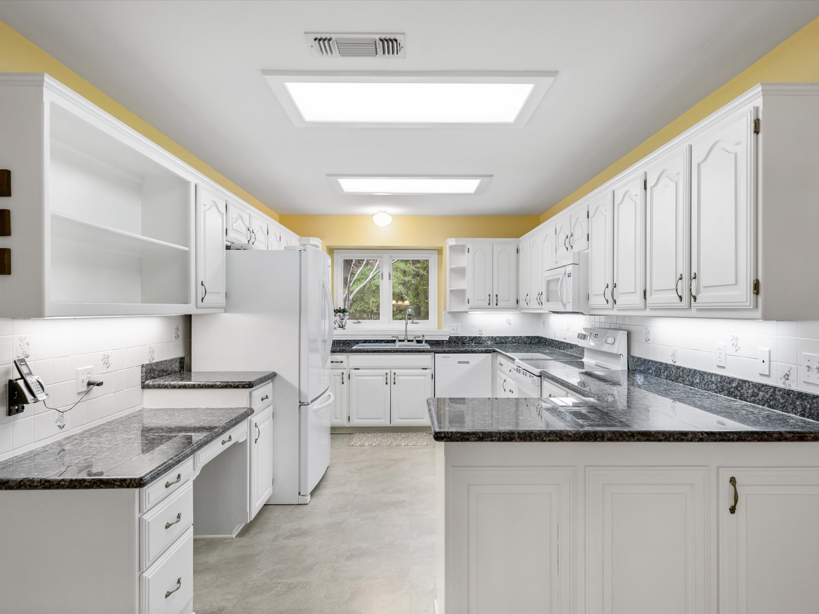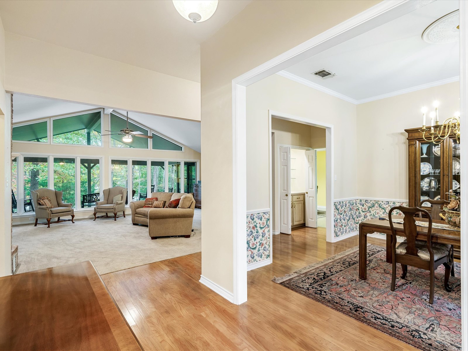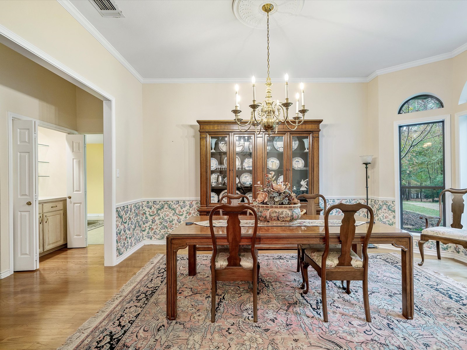 Lake Greenbriar WATERFRONT on over TWO acres! Wonderful one owner, custo, m home with over 3000 sf of living area. 4BD/3.5BA home designed to maximize awesome views of the lake from almost every room. Living room features vaulted ceiling, WBFP, built-ins and wall of windows. Formal dining with bar would make beautiful office/library. Kitchen is spacious with granite counter tops, pull outs and lots of cabinet & counter space. Primary bedroom en suite has his/her closets, double lavatories, shower & tub. One guest bedroom is an en suite and other 2 bedrooms share a Jack & Jill bath. Abundant storage and closet space throughout. Oversized attached garage with attic storage. Outside amenities include sprinkler system, detached workshop with electricity, enjoyable covered patio perfect for outdoor gatherings & open patios in back yard. This home has been well maintained and lovingly cared for. Private location to be on Lake Greenbriar as home is located at the end of short cul-de-sac and adjoins Point Park.