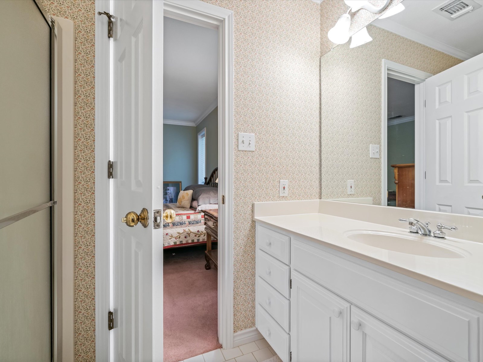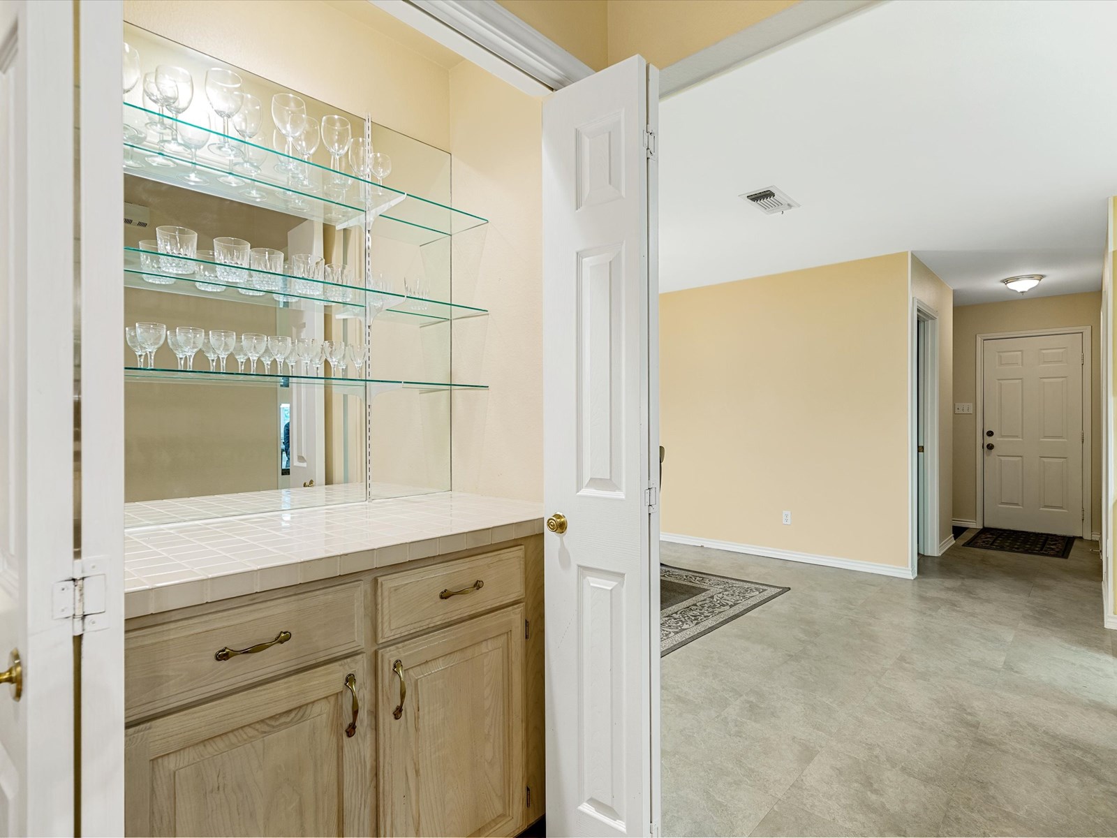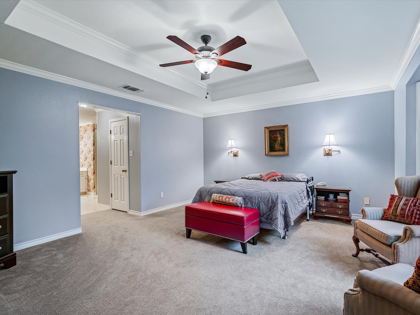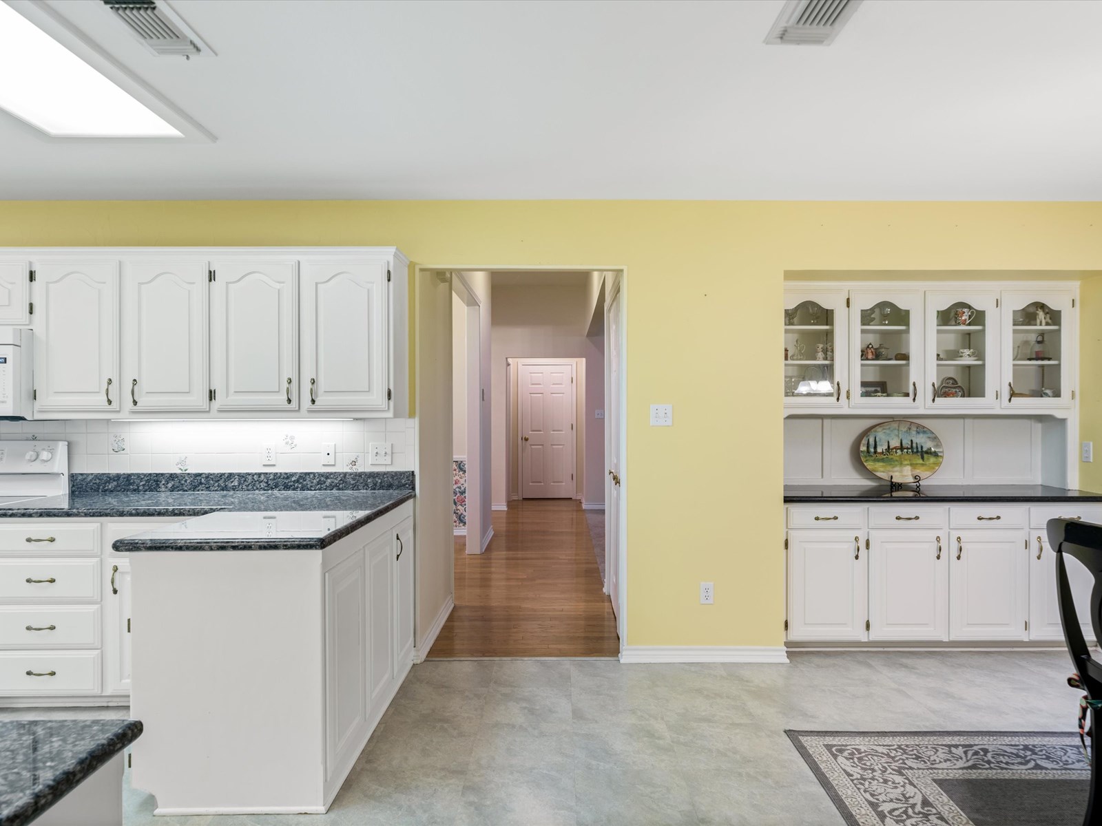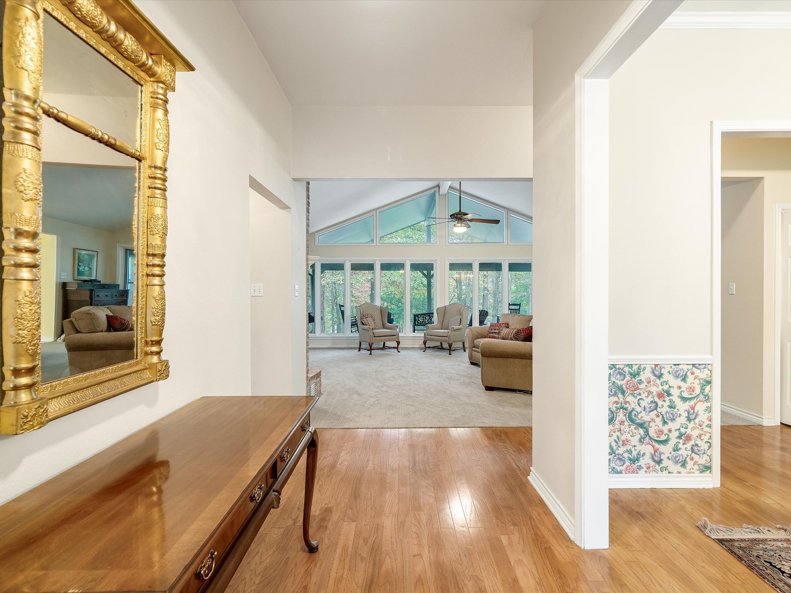 Lake Greenbriar WATERFRONT on over TWO acres! Wonderful one owner, custo, m home with over 3000 sf of living area. 4BD/3.5BA home designed to maximize awesome views of the lake from almost every room. Living room features vaulted ceiling, WBFP, built-ins and wall of windows. Formal dining with bar would make beautiful office/library. Kitchen is spacious with granite counter tops, pull outs and lots of cabinet & counter space. Primary bedroom en suite has his/her closets, double lavatories, shower & tub. One guest bedroom is an en suite and other 2 bedrooms share a Jack & Jill bath. Abundant storage and closet space throughout. Oversized attached garage with attic storage. Outside amenities include sprinkler system, detached workshop with electricity, enjoyable covered patio perfect for outdoor gatherings & open patios in back yard. This home has been well maintained and lovingly cared for. Private location to be on Lake Greenbriar as home is located at the end of short cul-de-sac and adjoins Point Park.